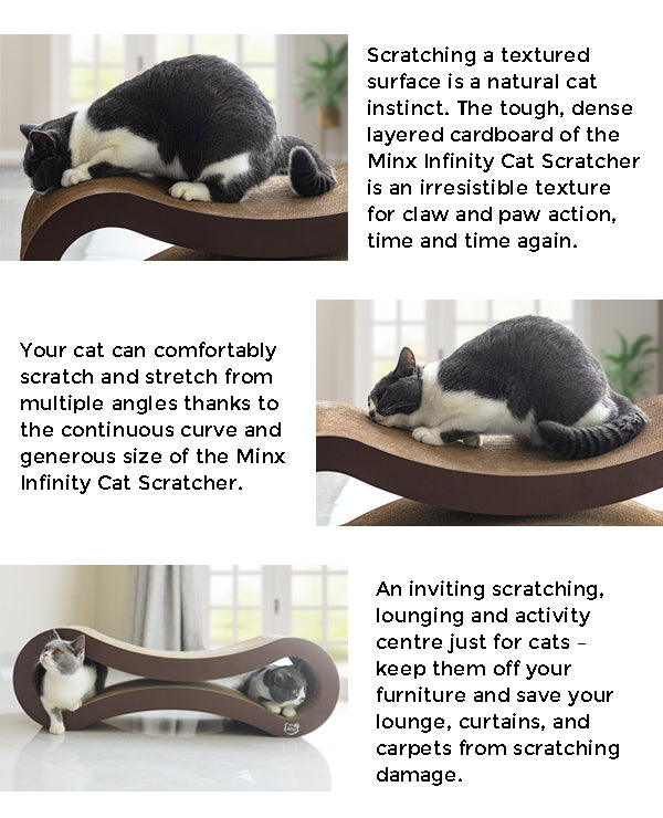 Minx Infinity Scratcher effectively balances the needs of your cat with your needs – keeping everybody in the home happy!